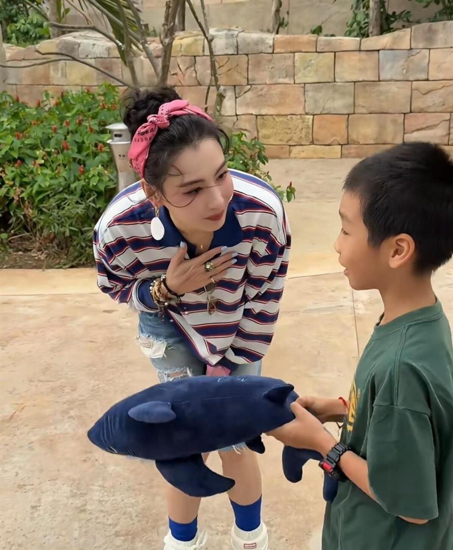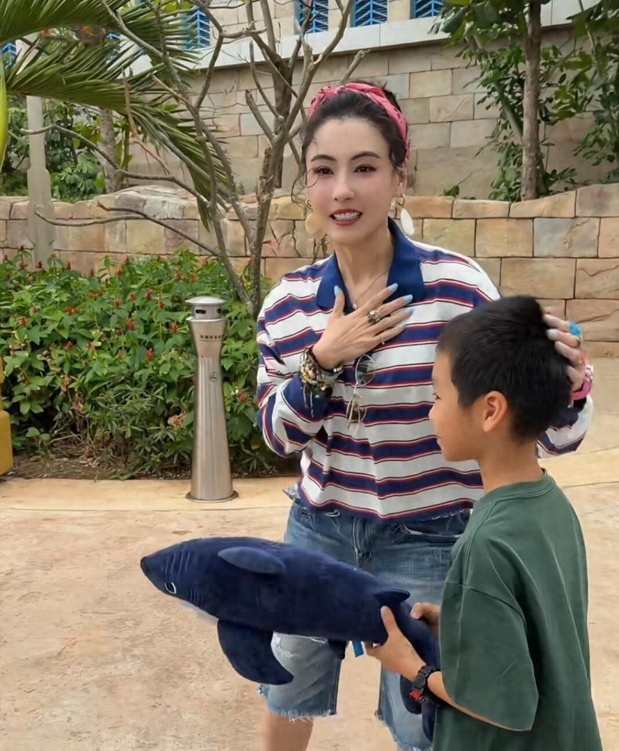 有人拍到她在三亚钻进了一家玩具店。 进去之后那可就不一样了,蹲在货架前仔仔细细地挑,这个摸摸那个看看,怀里抱了好几个毛绒玩具,还不忘跟身边的小朋友聊两句,问问哪个好玩 。 最后结账的时候,特意挑走了一只憨憨的鲨鱼公仔 。