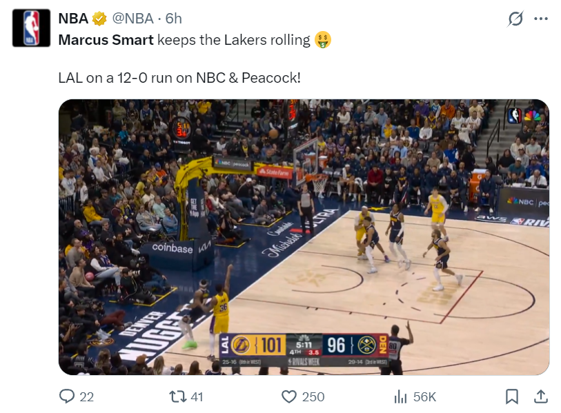 这场比赛的斯玛特绝对算得上湖人的超级奇兵,终场前6分02秒斯玛特制造沃特森进攻犯规,随后斯玛特进入Zone的状态,5分44秒制造沃特森三分犯规三罚全中,5分10秒接东契奇助攻三分命中,2分43秒三分球再度命中,在这短短的179秒里斯玛特连拿9分,湖人直接将分差拉开到12分。